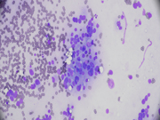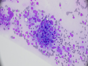 - Figure 1: Rapid on-site evaluation (ROSE) FNA material of mediastinal mass, smear, Diff-Quik stain, x 40 maginification