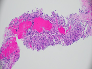 - Figure 4: Core biopsy of mediastinal mass, H&E, x 100 magnification