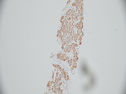 - Figure 6: Core biopsy of mediastinal mass, S100, x 100 magnification