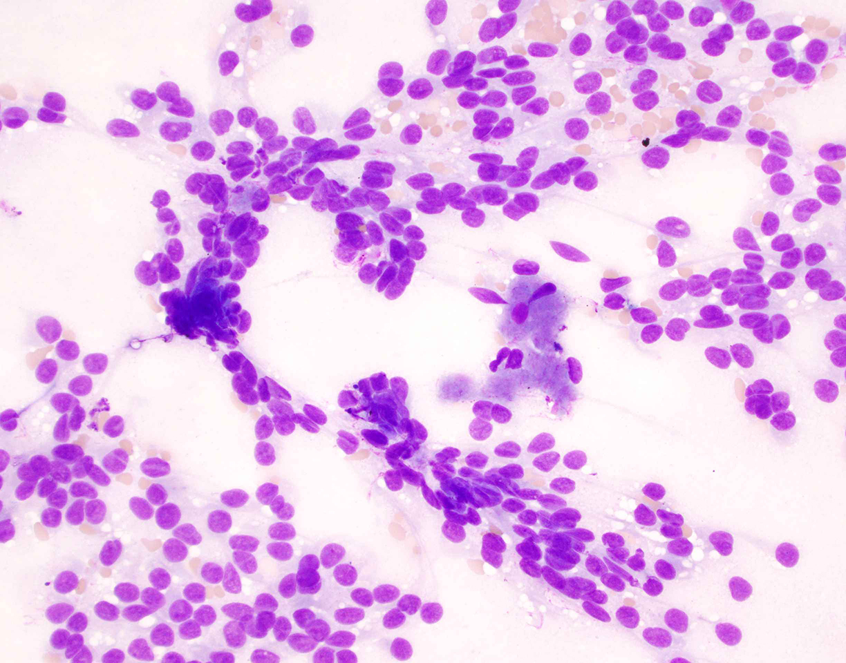 - Figure 1: FNA material, smear, Diff-Quick stain, 40x magnification