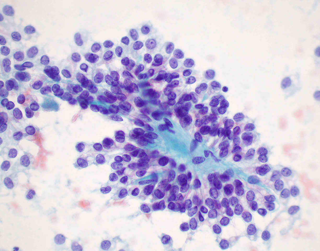 - Figure 2: FNA material, smear, Pap stain, 60x magnification