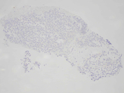 - Figure 6: Cell-block, E-cadherin immunohistochemical stain, 20x magnification